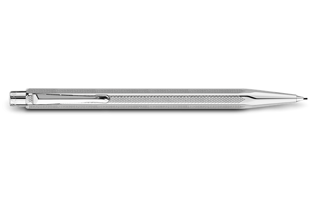 Porte-mines corps en laiton revêtu de platine. Guillochage losange emblématique des modèles de l'époque.
